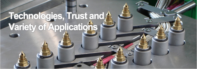 특징: 노즐의 게이트 부분이 Tip과 Union으로 분할된 구조로써 조립 후 게이트까지의 팁 높이가 균일하며, 슬림 타입의 코일히타를 적용하여 게이트간의 거리를 좁혔습니다. 각종 중소형 뚜껑 금형에 적합 합니다.